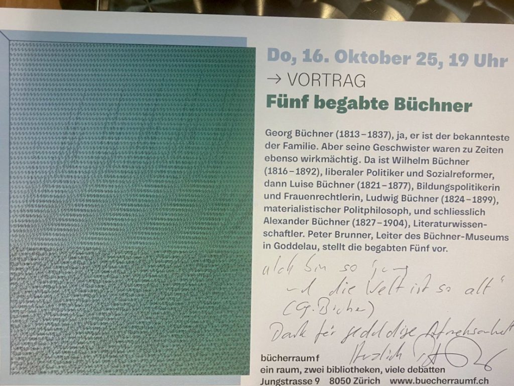 Fürs Büchnerhaus wird der Besuch in das Themenführungsprogramm des zweiten Halbjahrs 2025 einfließen; voraussichtlich erstmals am Samstag, dem 23. August, 15 Uhr.